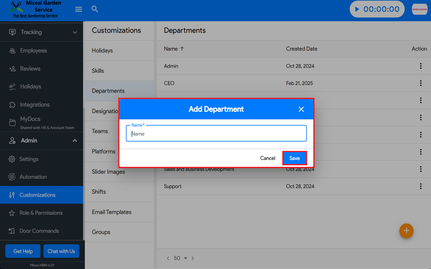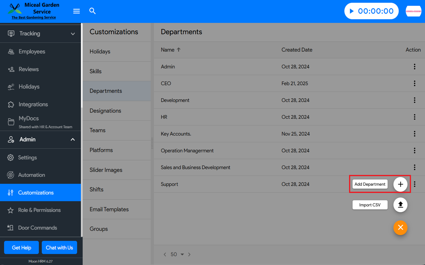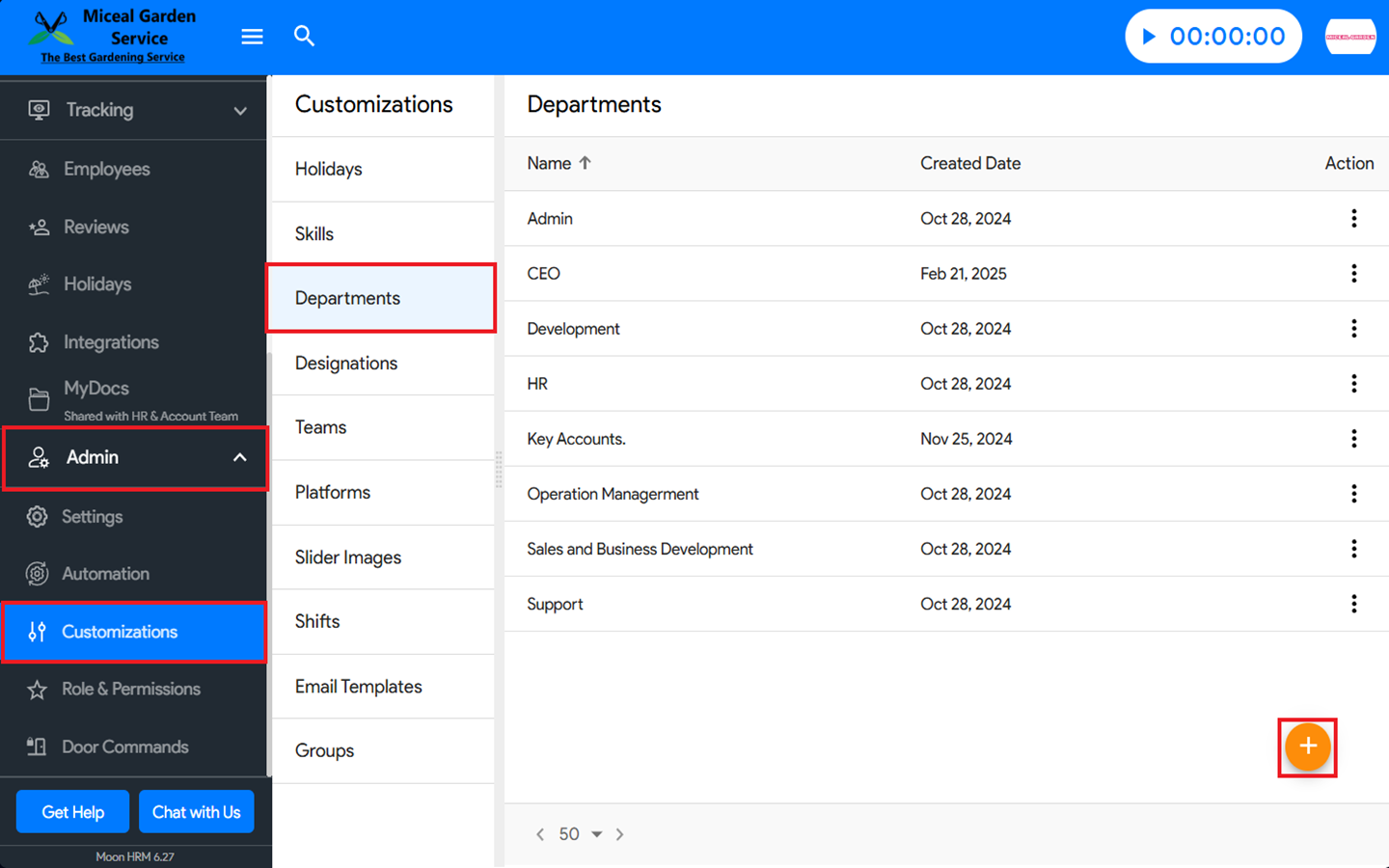 - From the main menu, navigate to Admin ➜ Customizations ➜ Departments.