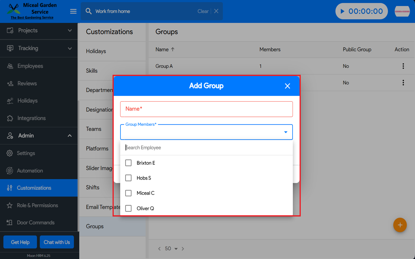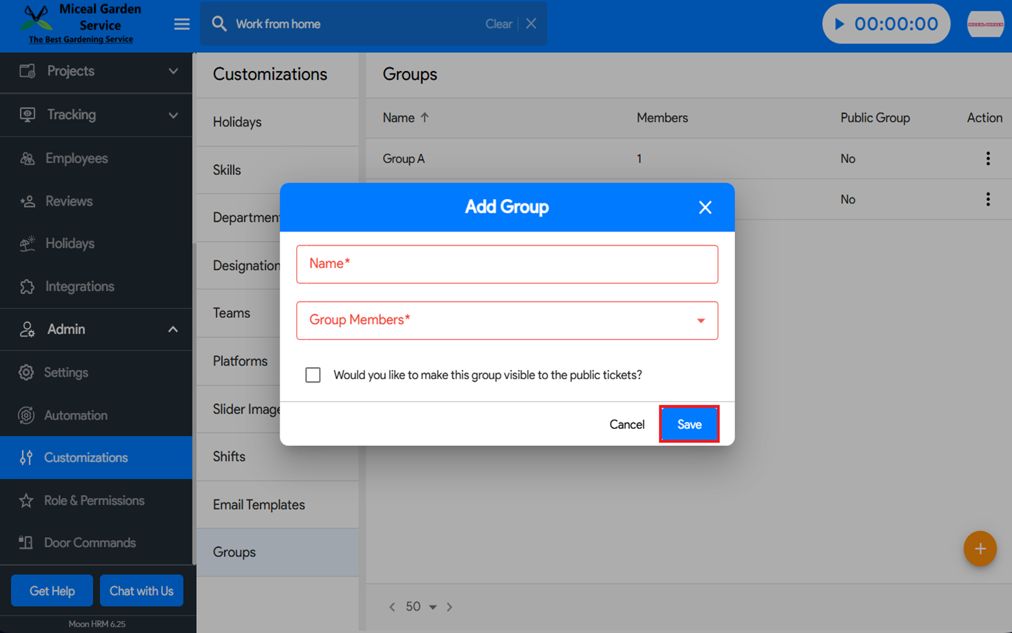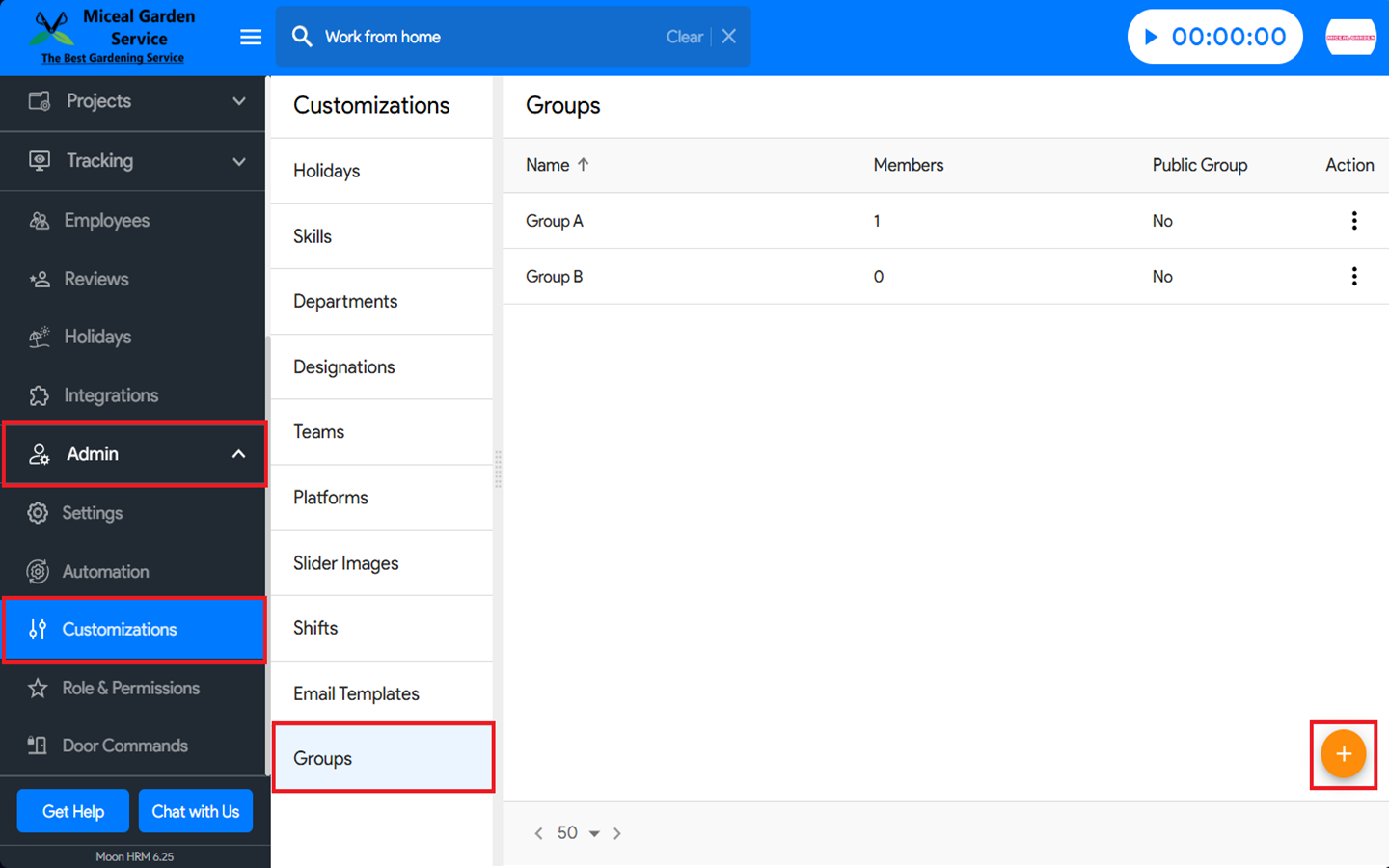 - From the main menu, navigate to Admin ➜ Customizations ➜ Groups.
