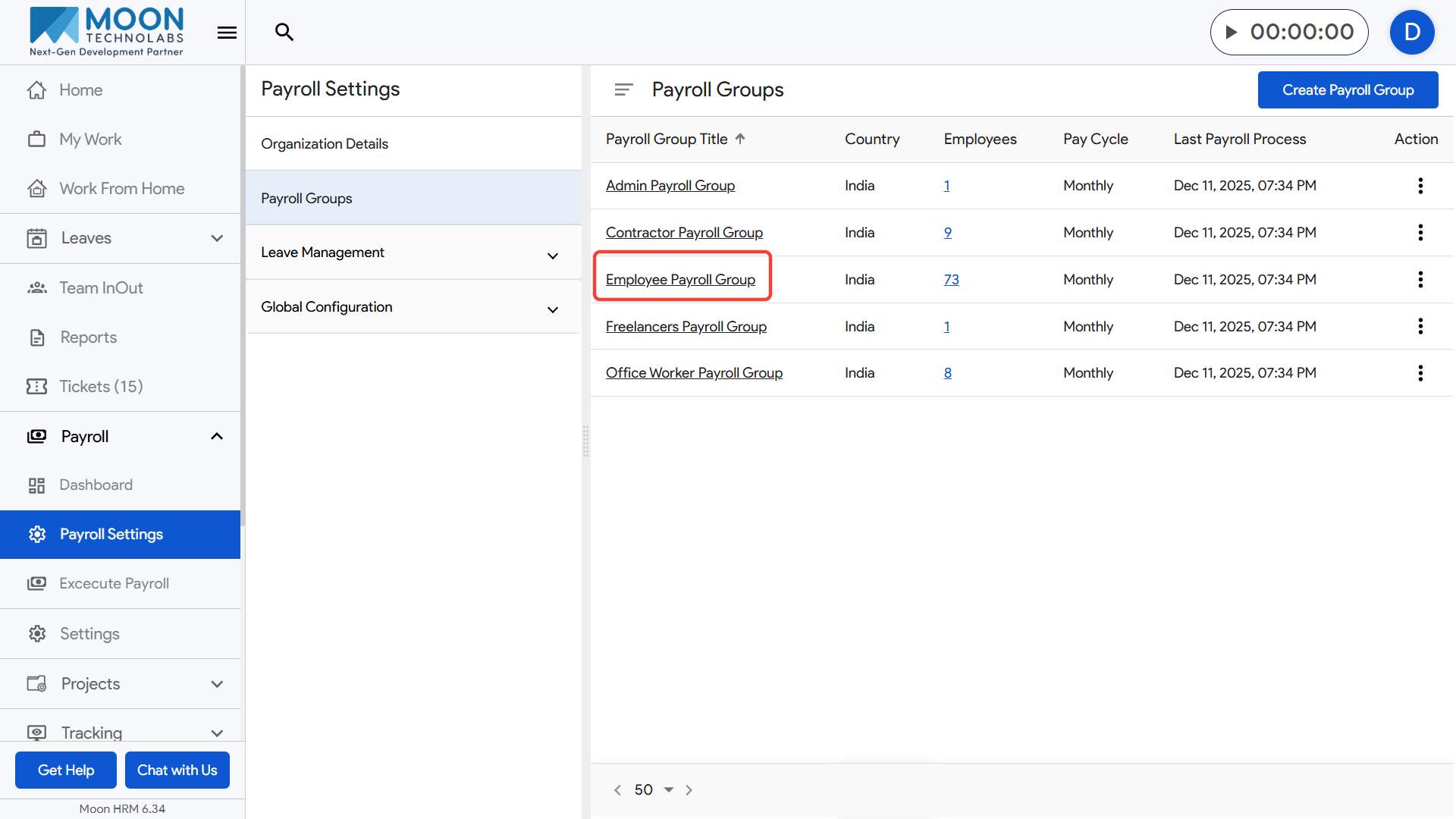 To add a recurring allowance for a specific payroll group, click on Payroll Settings from the sidebar and open the Payroll Groups section.