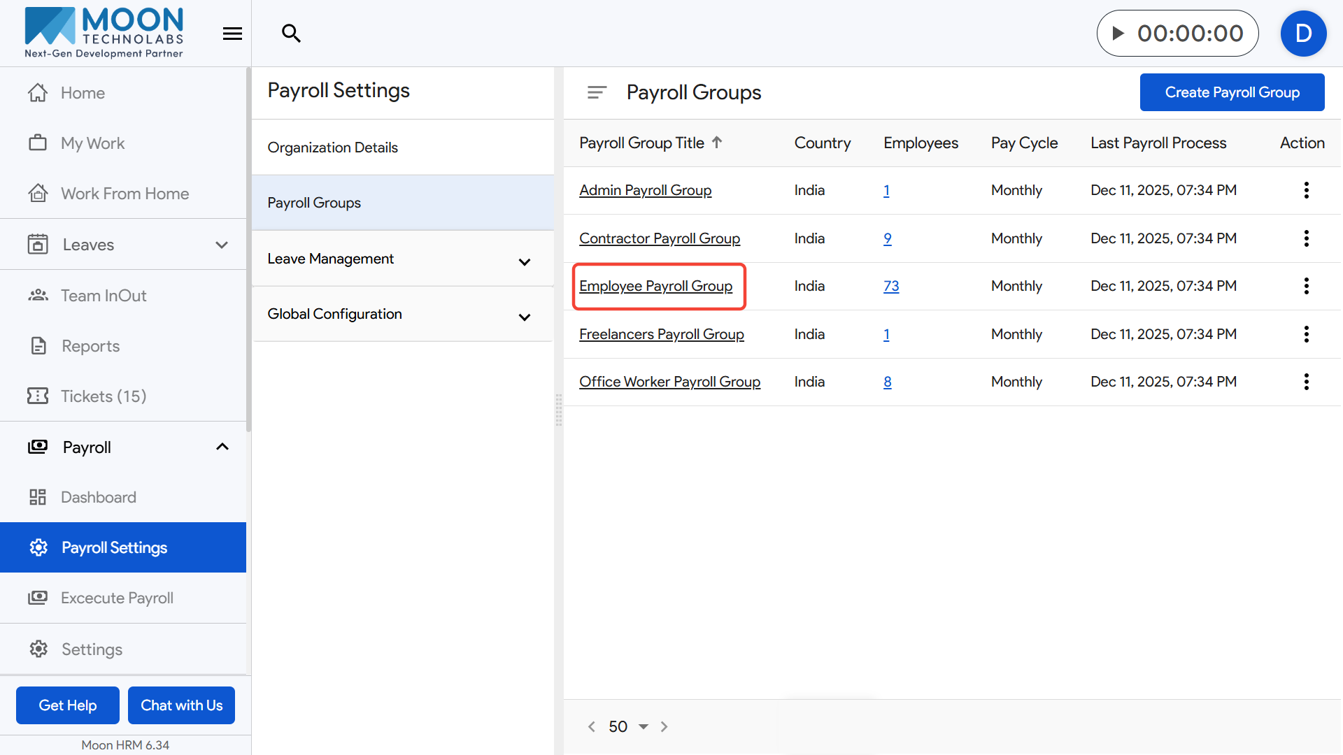 To add an Ad-hoc deduction for a specific payroll group, click on Payroll Settings from the sidebar and open the Payroll Groups section.