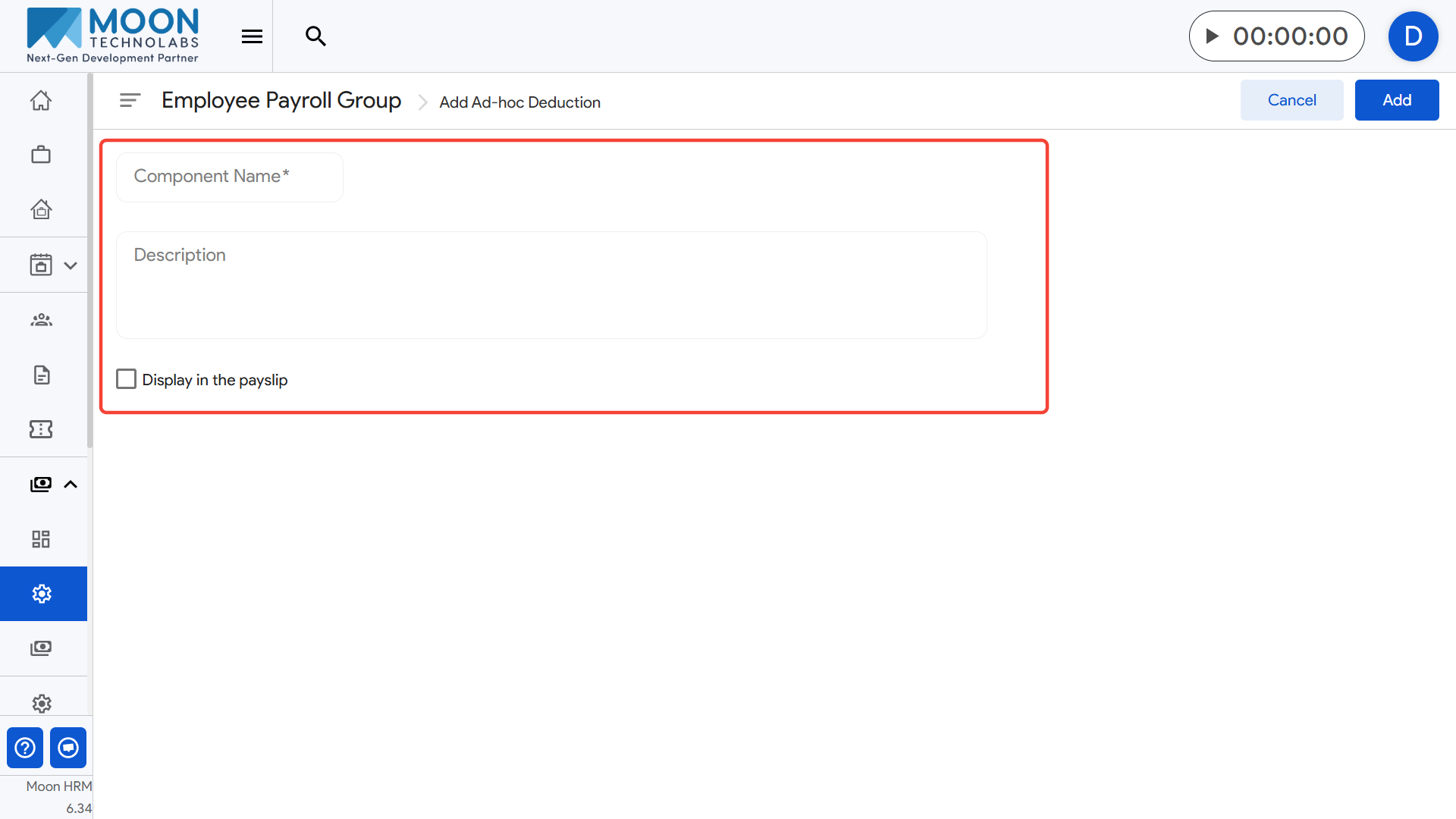 Open the Ad-hoc Components section and click the Add Ad-hoc Deduction option.