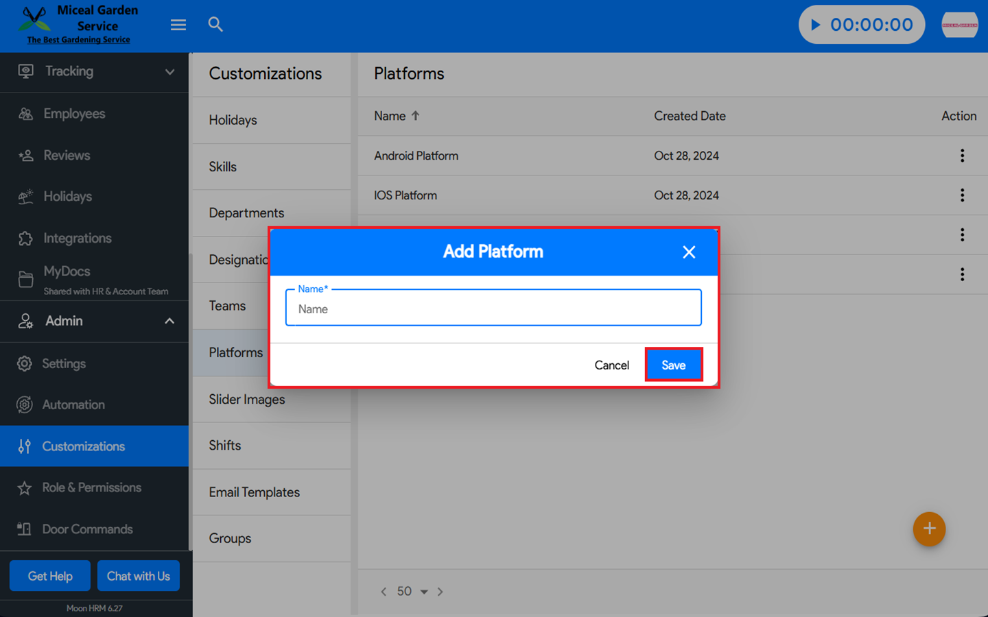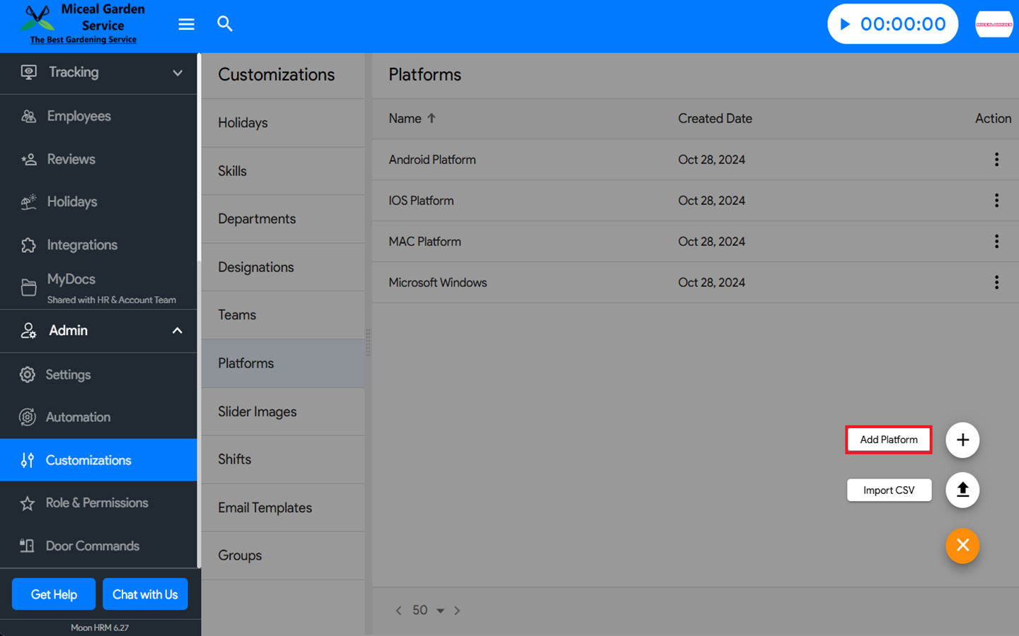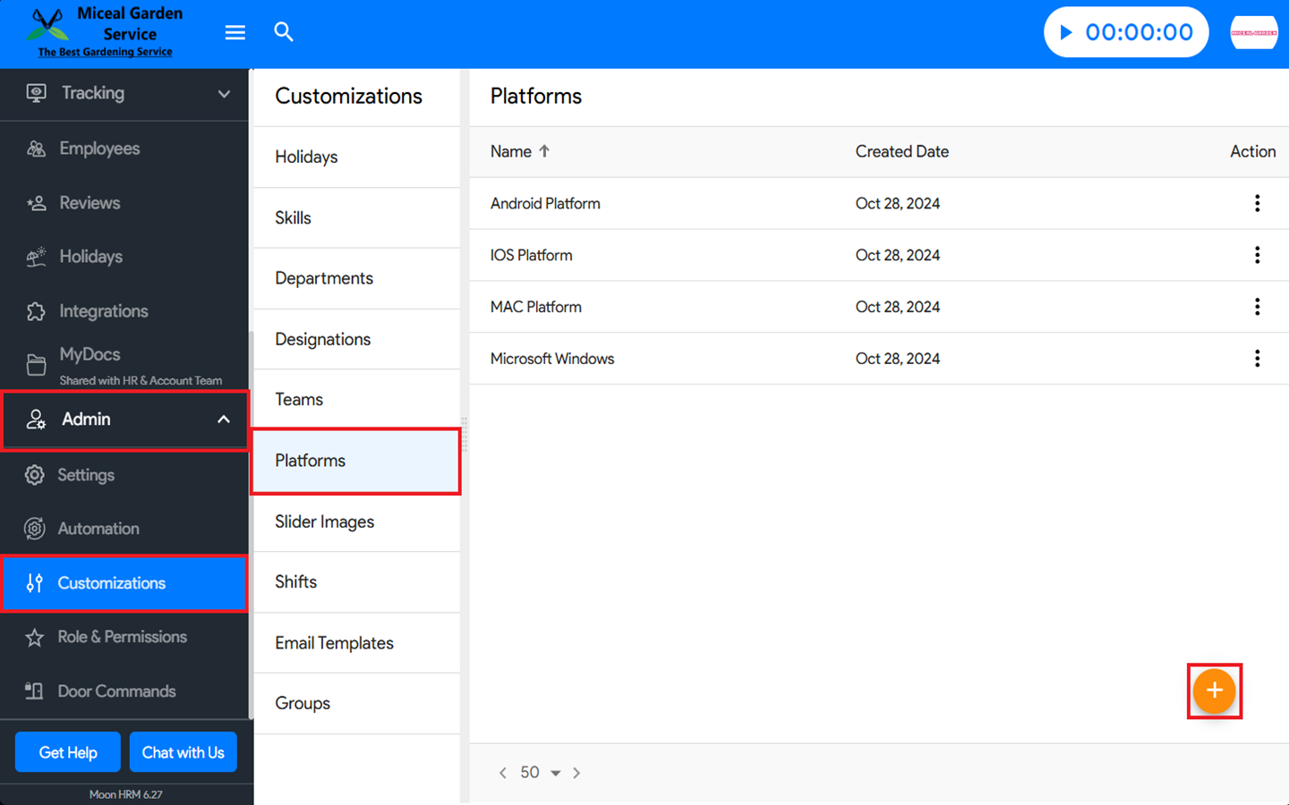 - From the main menu, navigate to Admin ➜ Customizations ➜ Platforms.