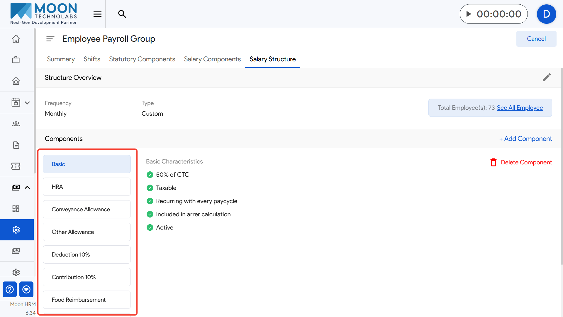 Here, you can view all components that form the salary breakup for employees under this payroll group.