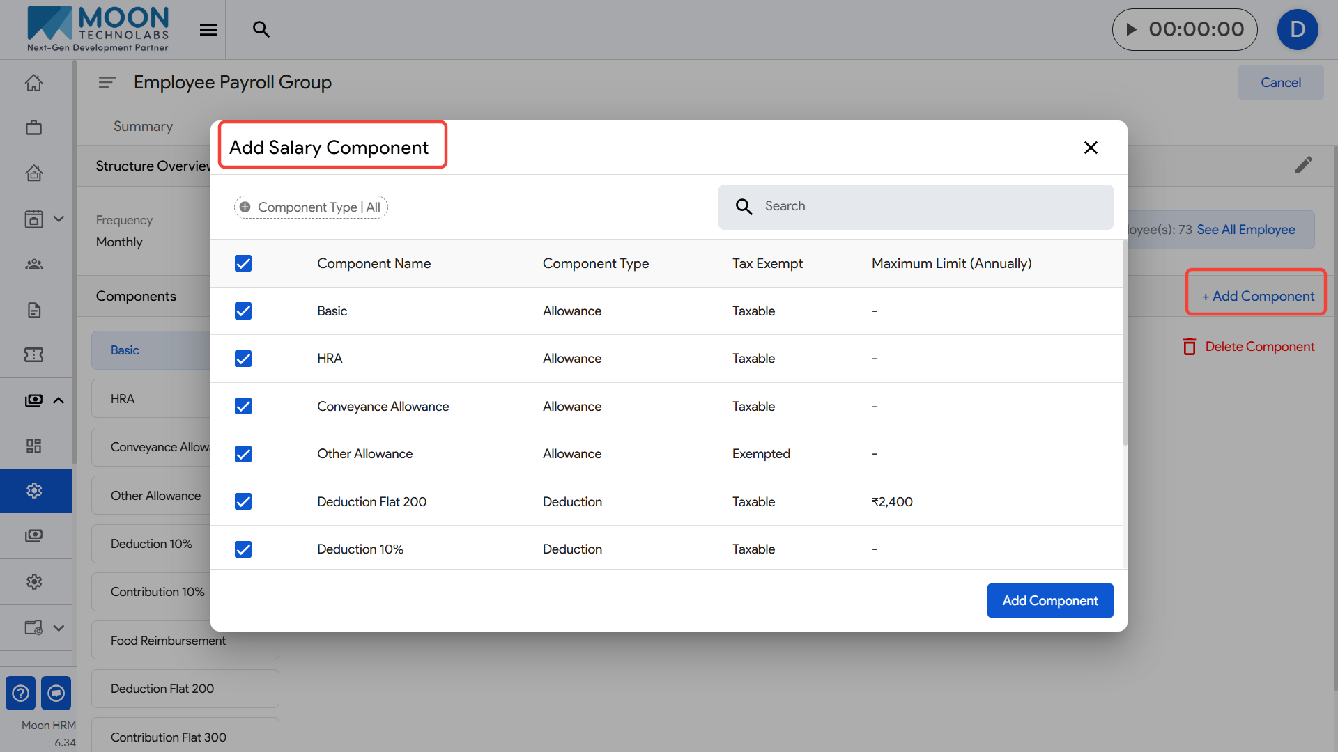 If you want to add a new component to the salary structure, click the Add Component option.