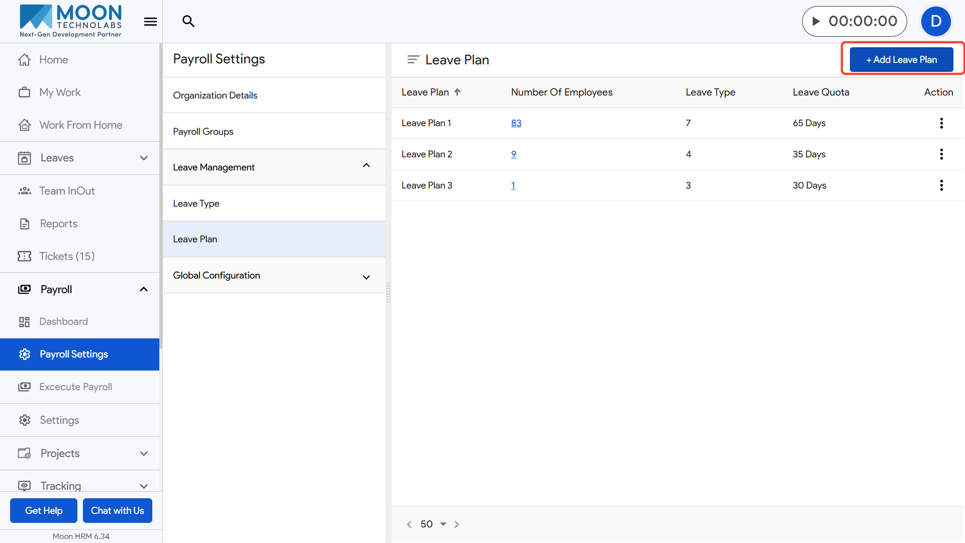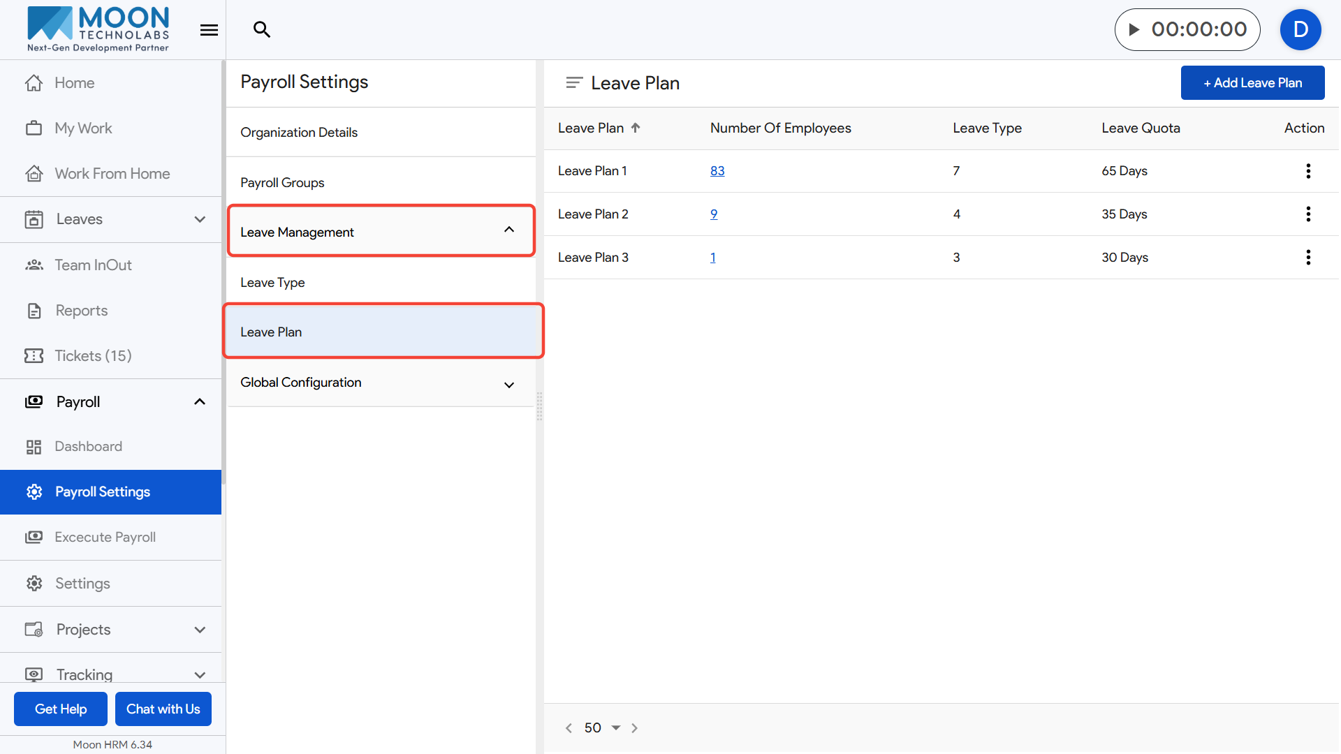 To create a new leave plan, open Payroll Settings and select the Leave Plan section.