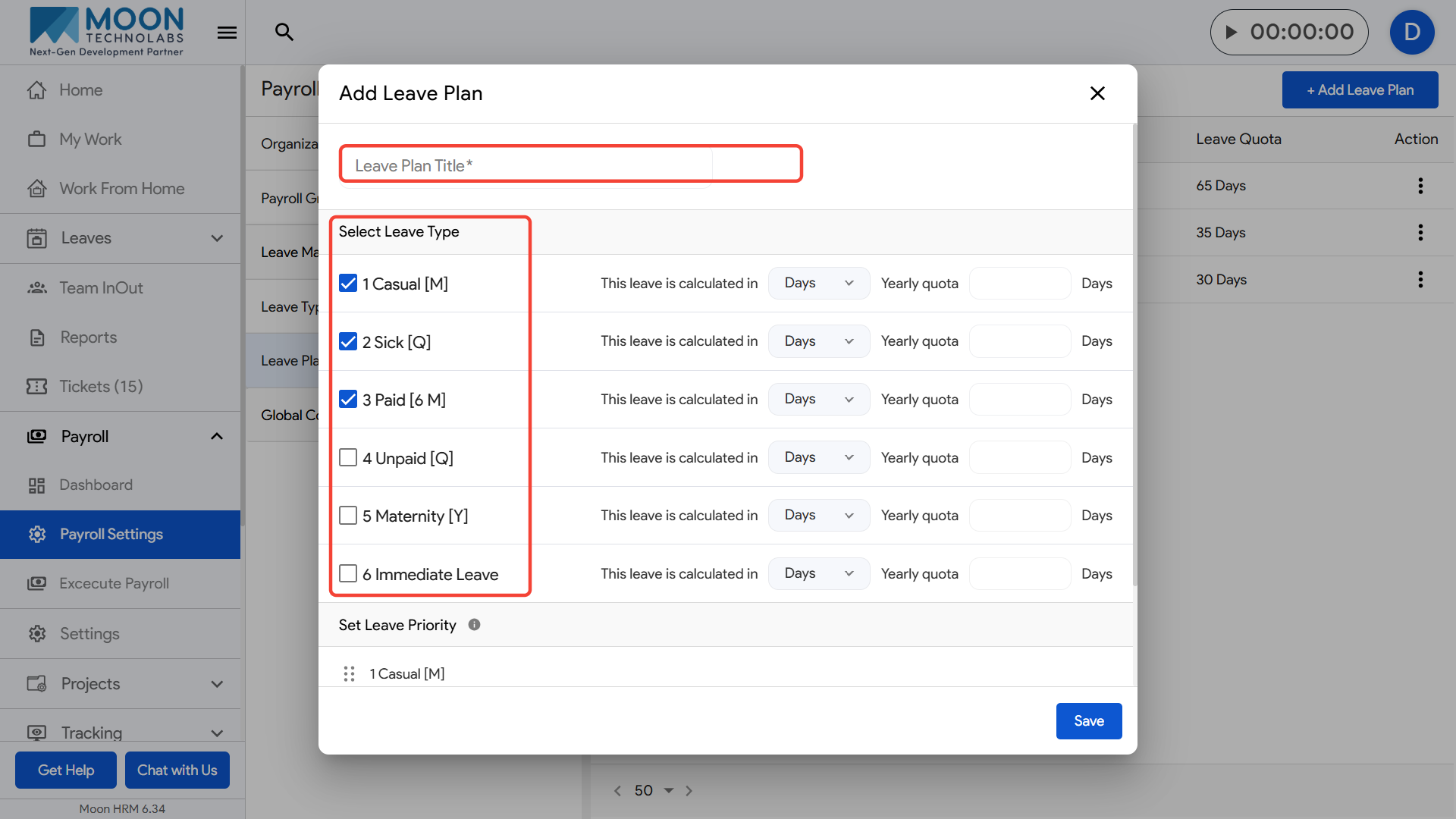 Enter a title for the leave plan, then choose the leave types you want to include by selecting them from the list.
