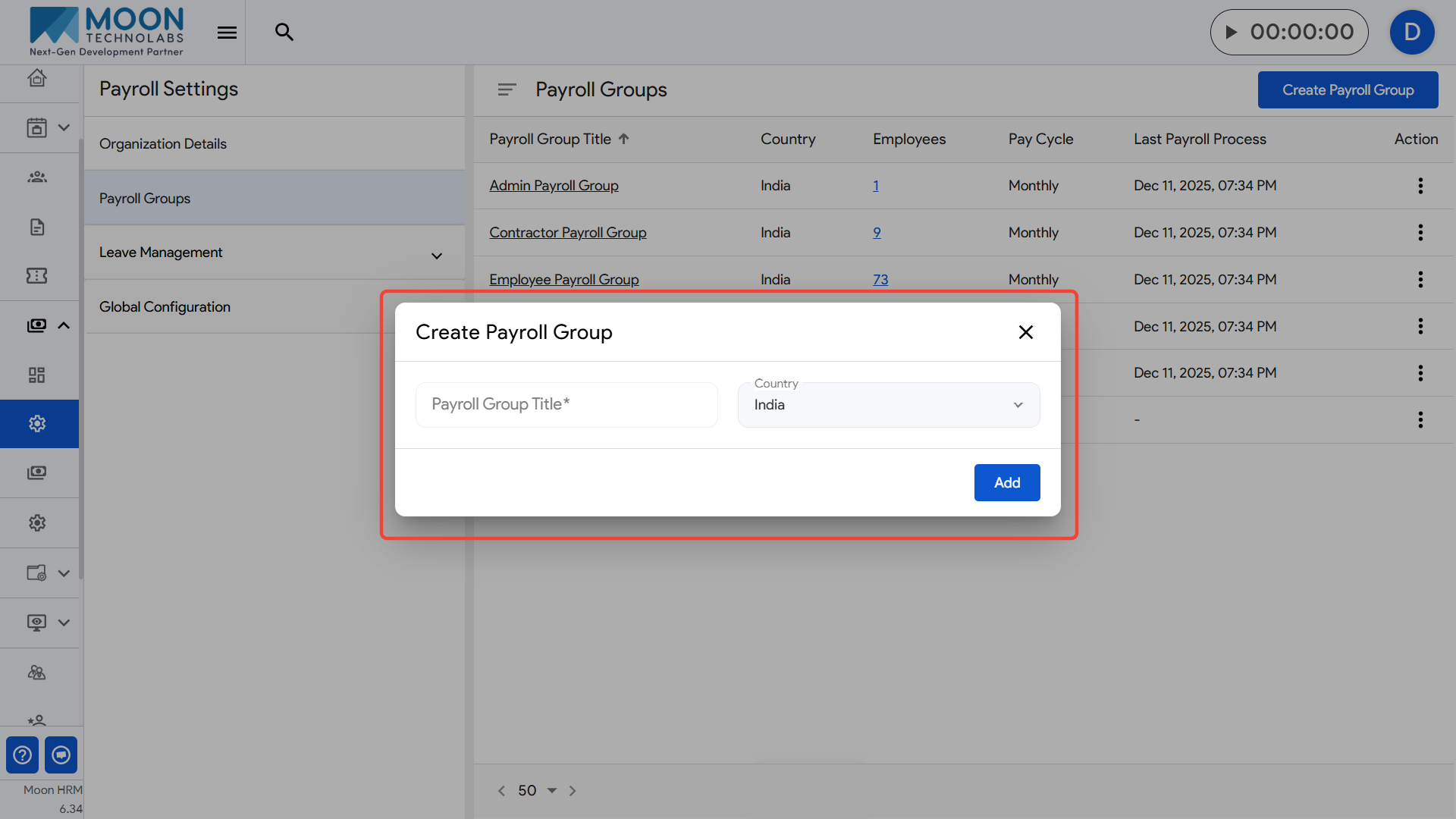 Enter the required details such as the Payroll Group Title, Country.