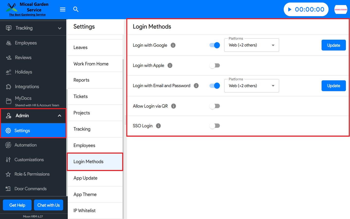 You can enable/disable different login methods in Moon HRM easily by following the steps below.