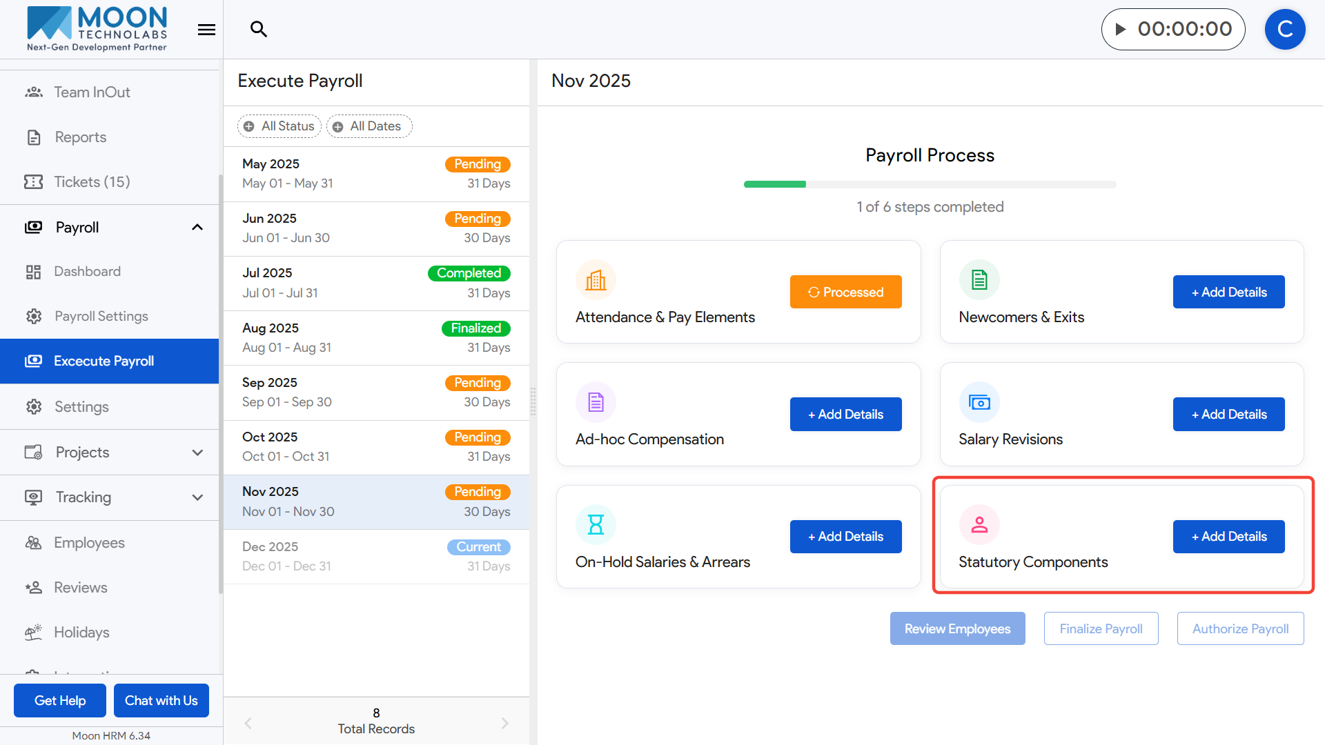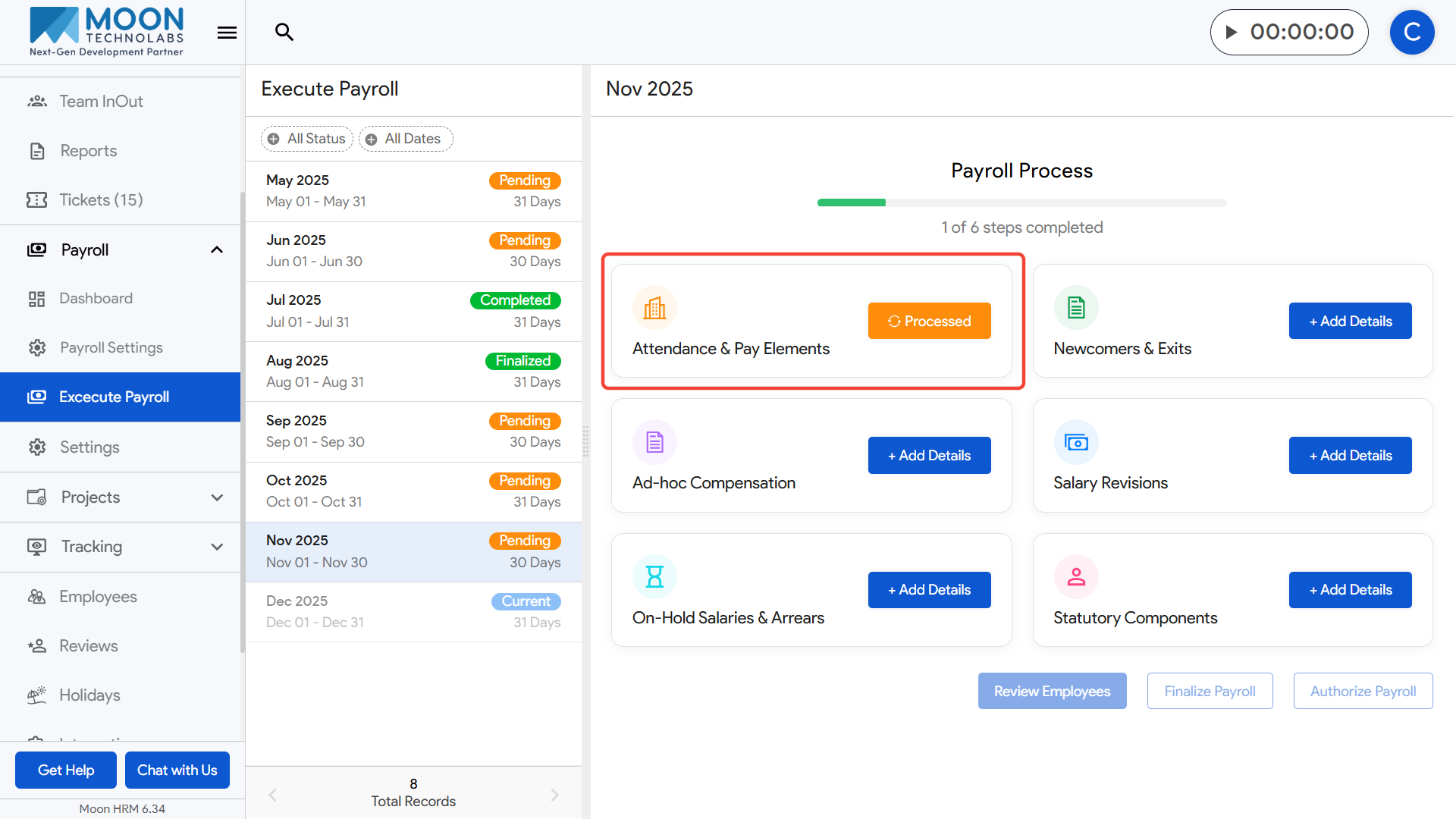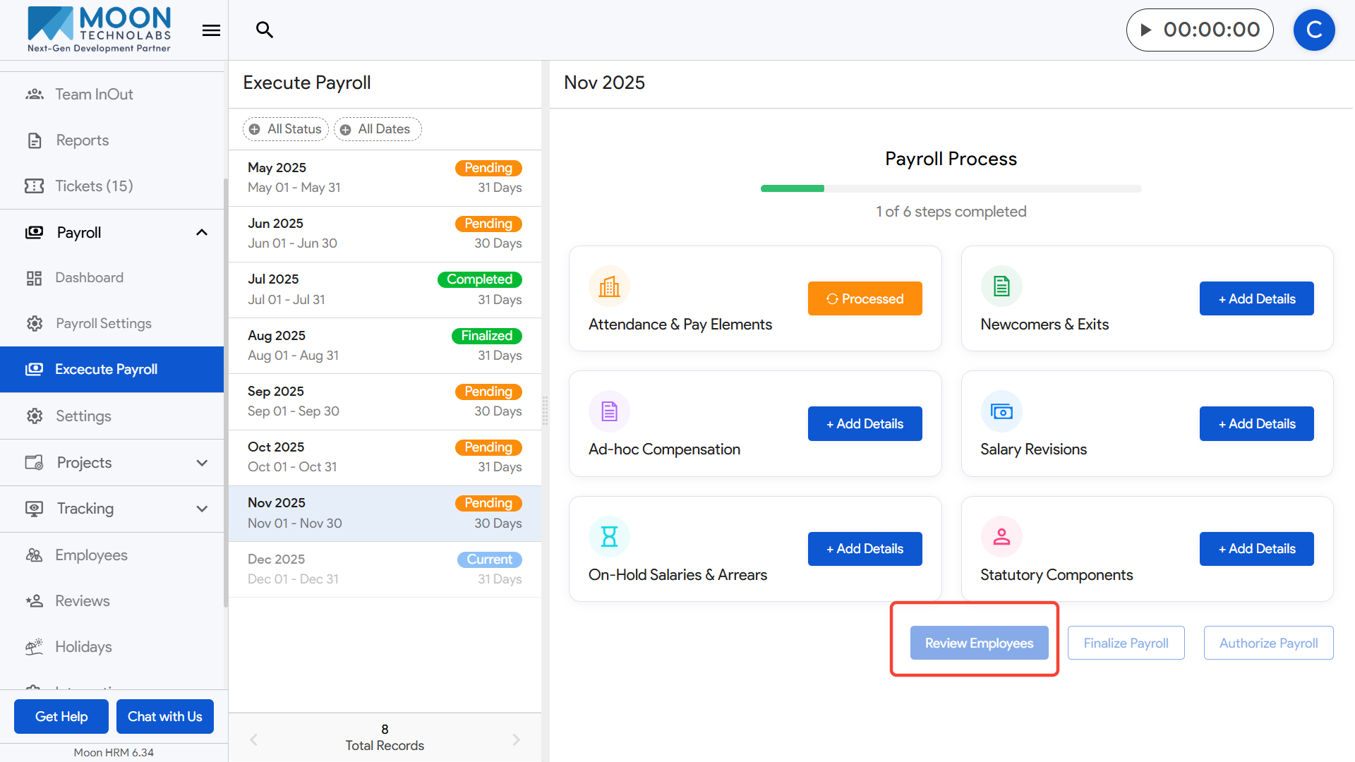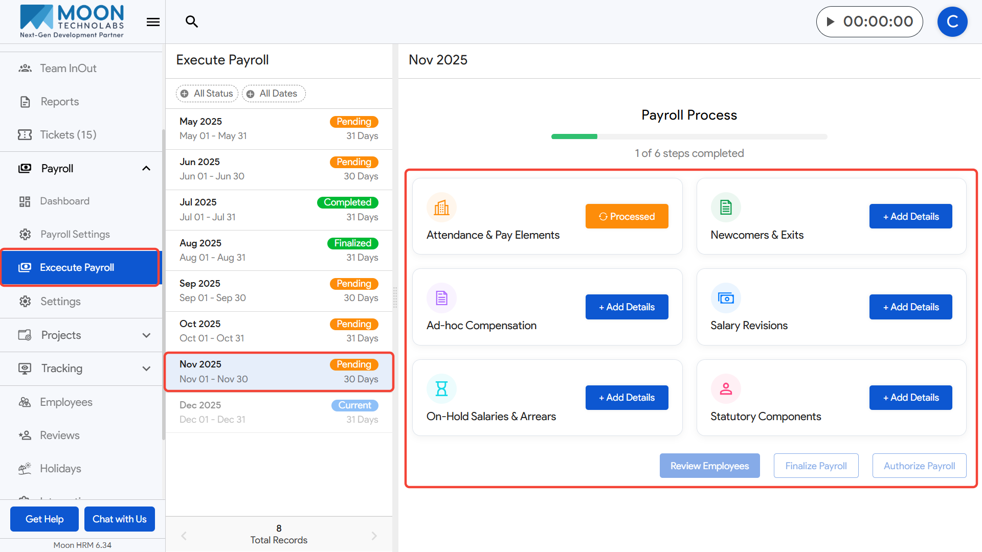 To execute payroll, first click on Execute Payroll from the left sidebar menu.