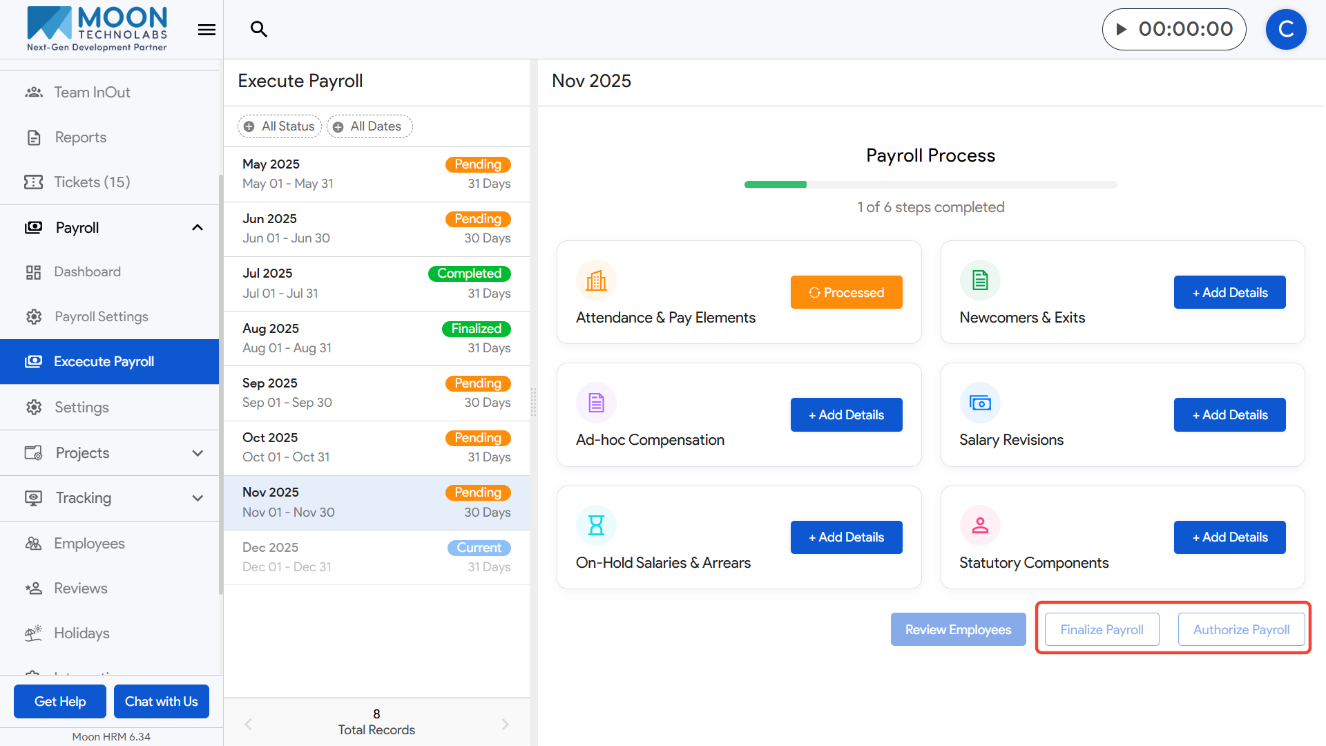 Finally, finalize the payroll and authorize it for payout once everything looks correct.