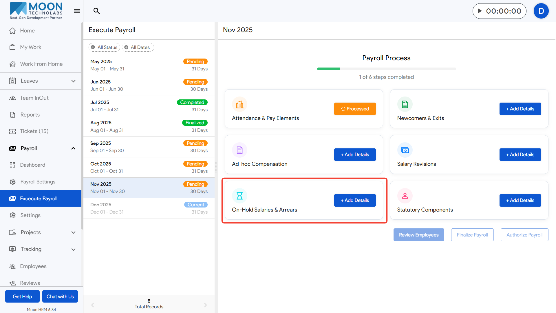 Update On-Hold Salaries & Arrears if any pending payouts or previous-month adjustments must be included.