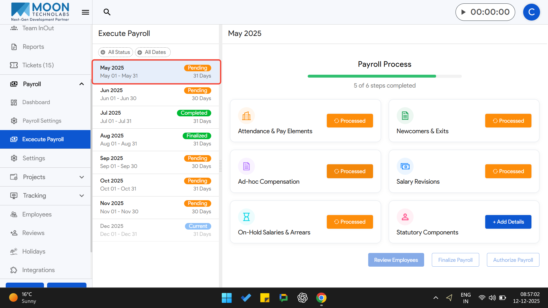 To process TDS Overrides as part of payroll execution, click on Execute Payroll from the sidebar and select the payroll month you are working on.