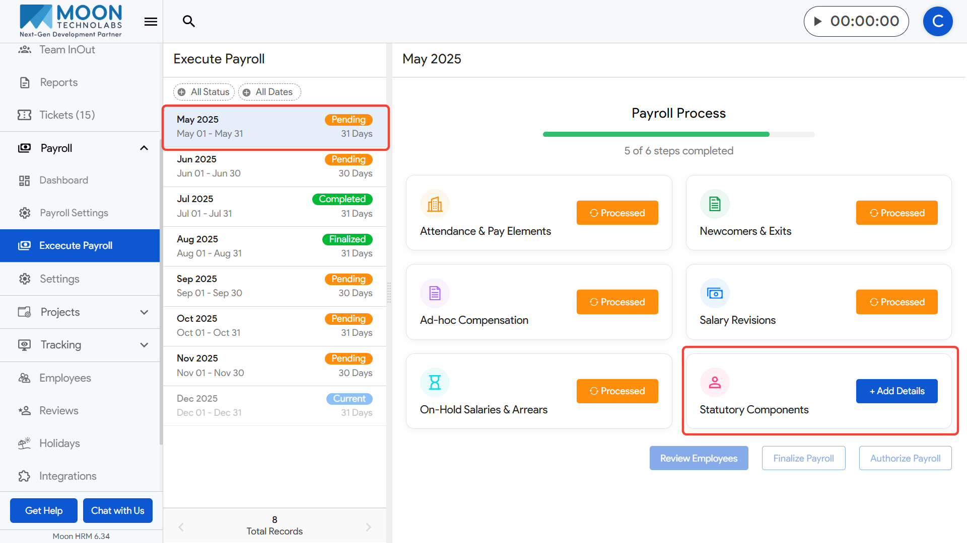 To process PT Overrides as part of payroll execution, click on Execute Payroll from the sidebar and select the payroll month you are working on.
