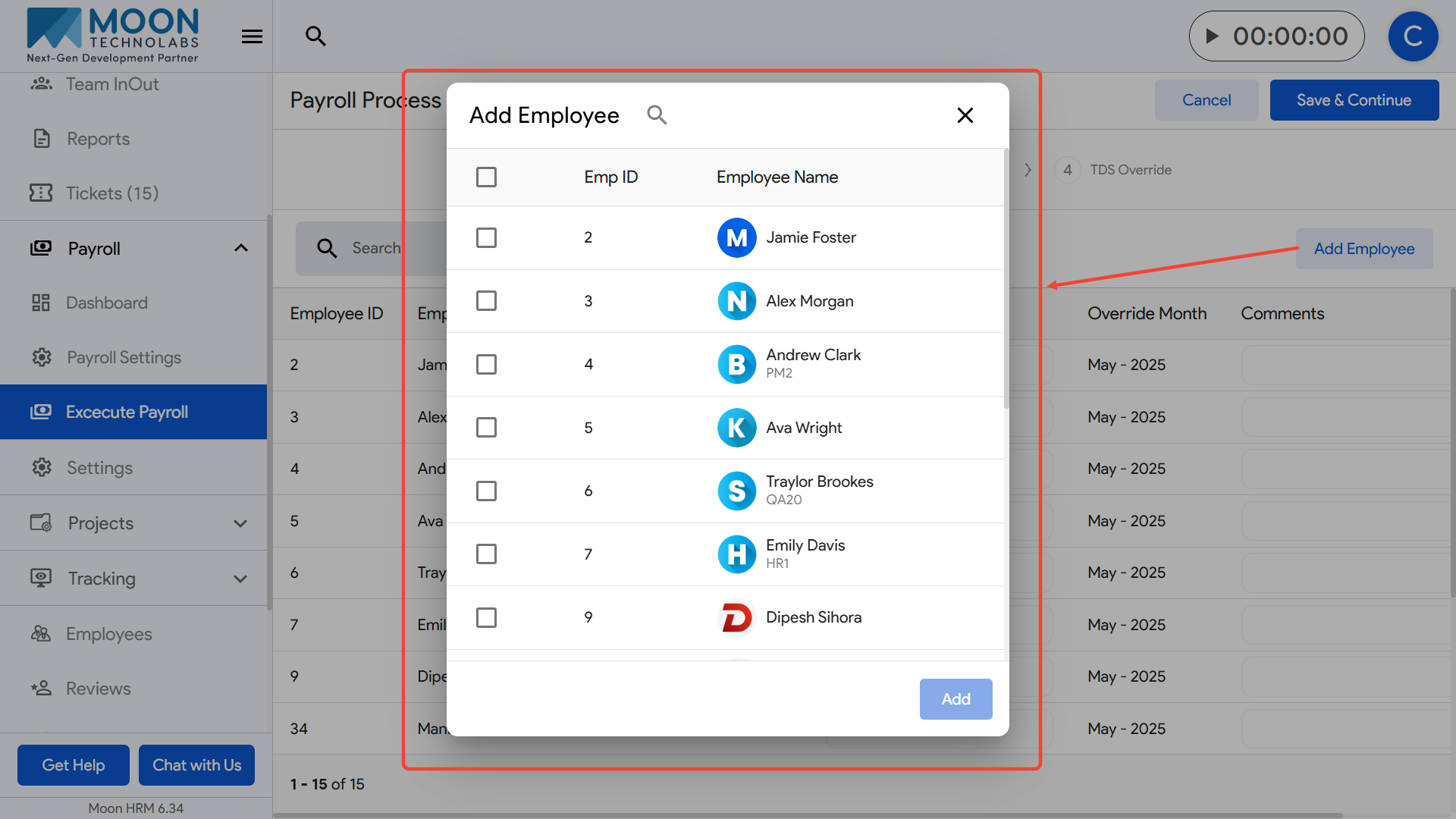If an employee is missing from the list, use the Add Employee button to include them manually.