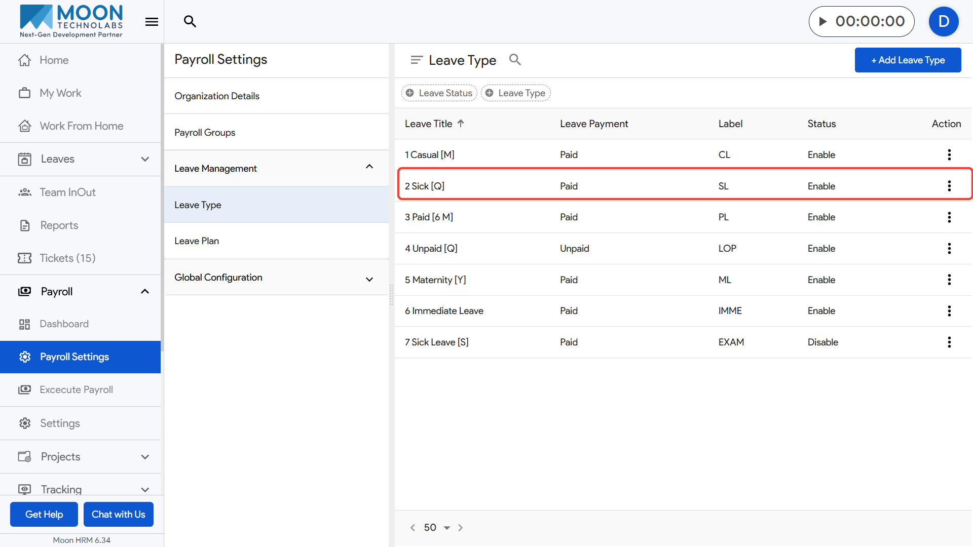 Select Leave Type and choose the leave you want to modify or click Add Leave Type to create a new one.