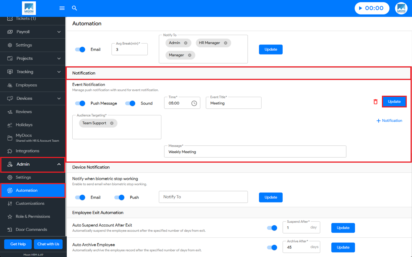 You can easily manage the event notification in Moon HRM by following the steps below.