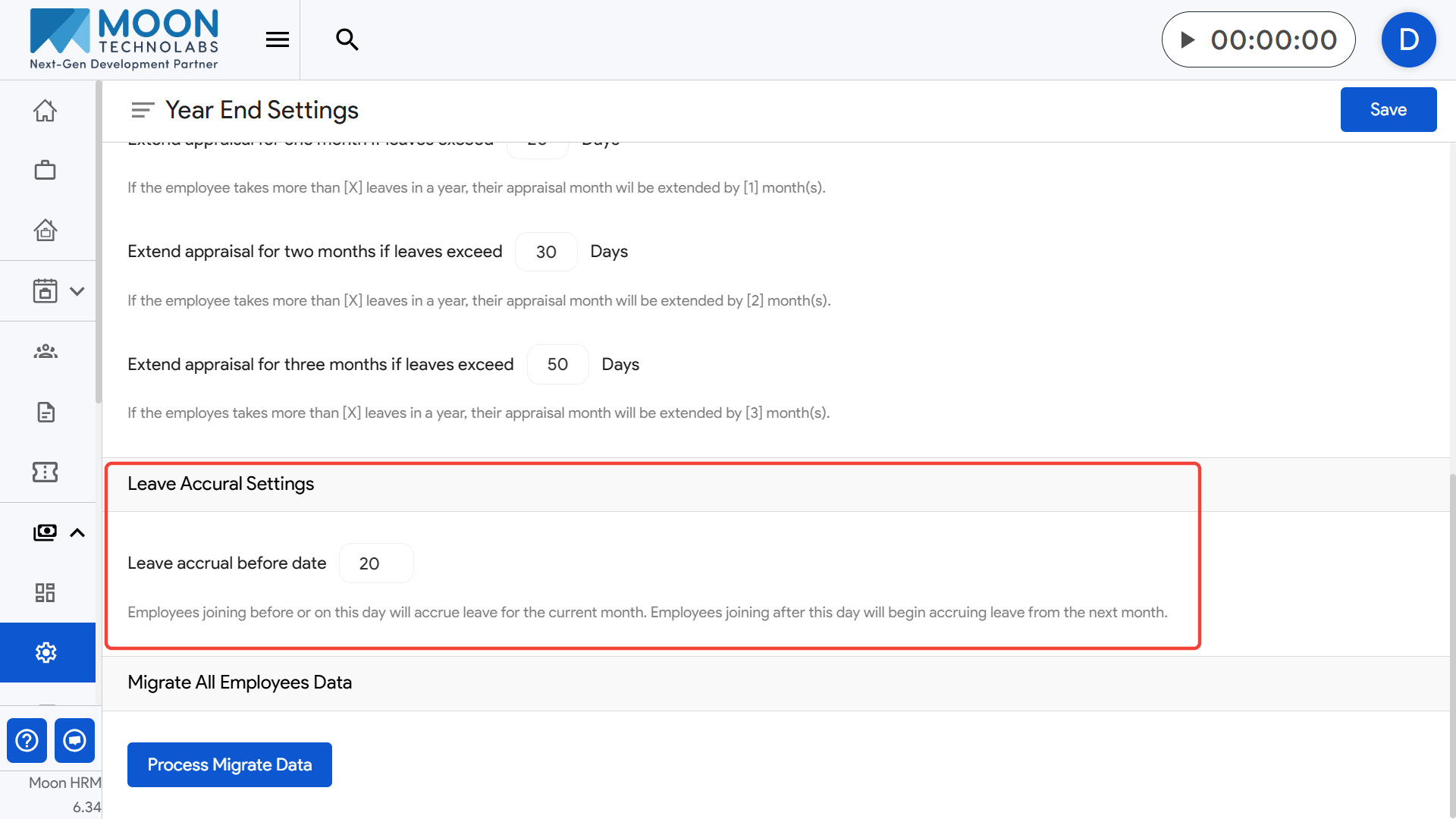 - Example: If the date is 20, employees who join on or before the 20th will earn leave for the current month, while employees joining after the 20th will start accruing leave from the next month.