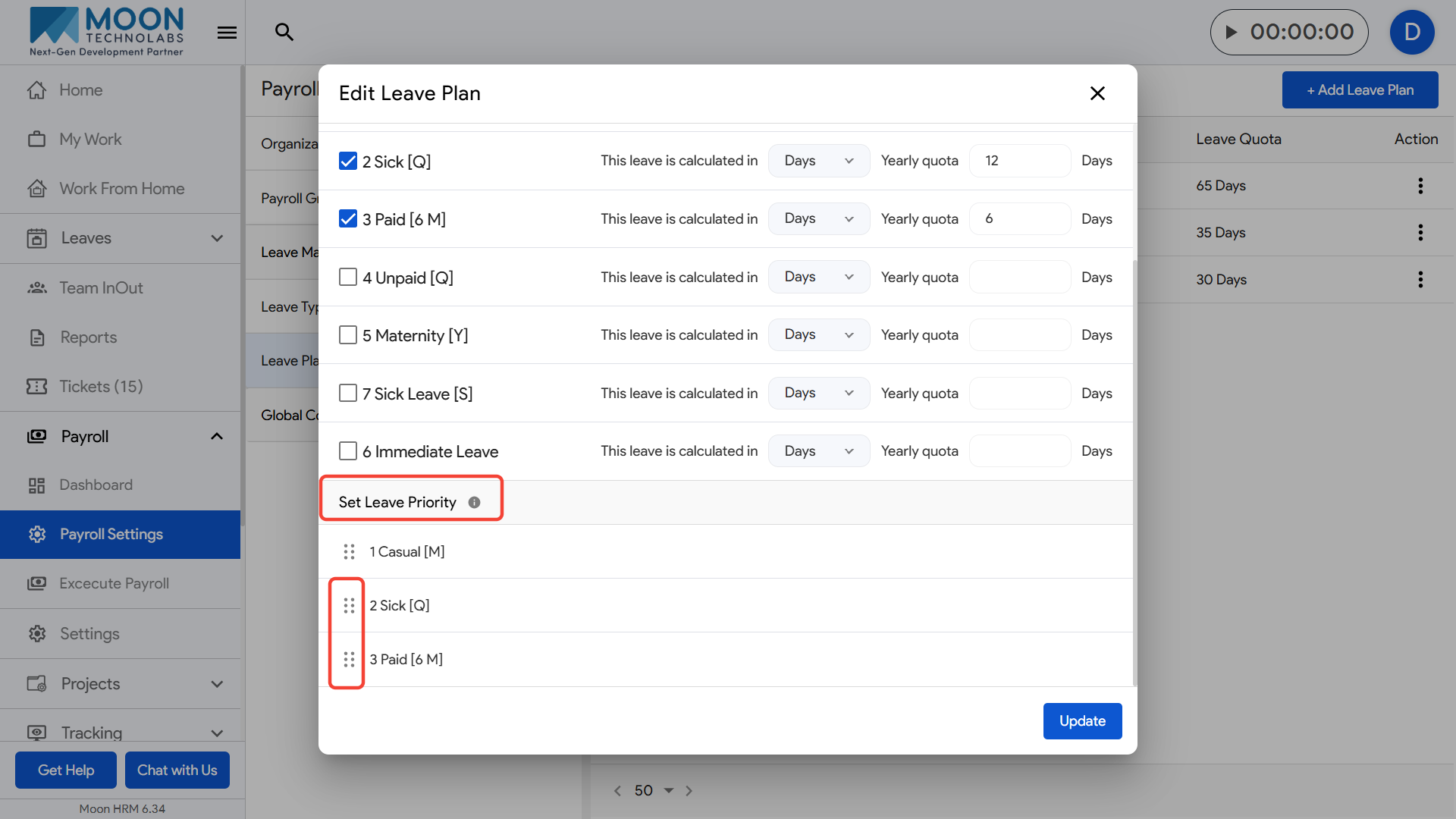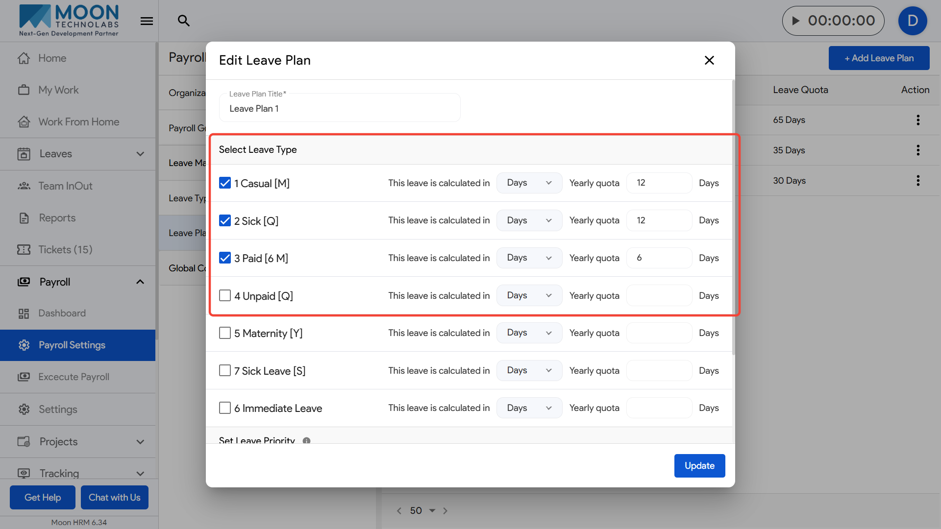 After selecting them, scroll to the Set Leave Priority section where the chosen leave types are listed.