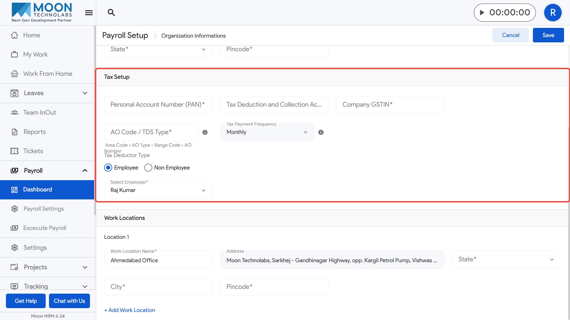 - Finally, select the authorized employee responsible for tax deductions and save the details.