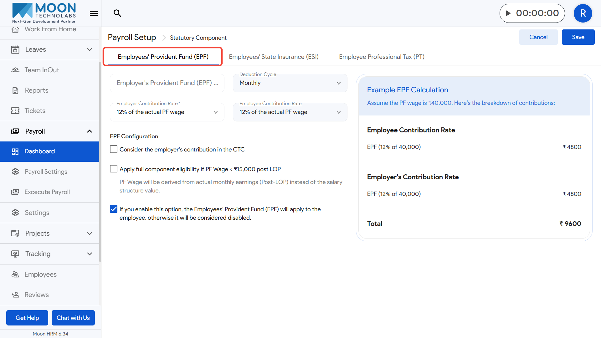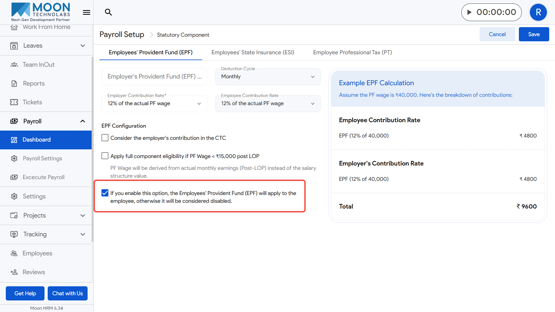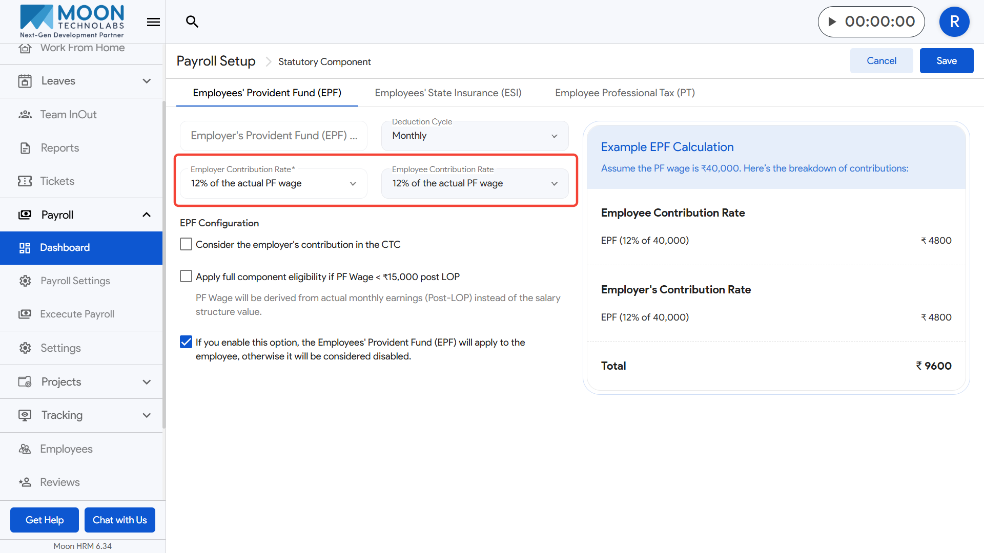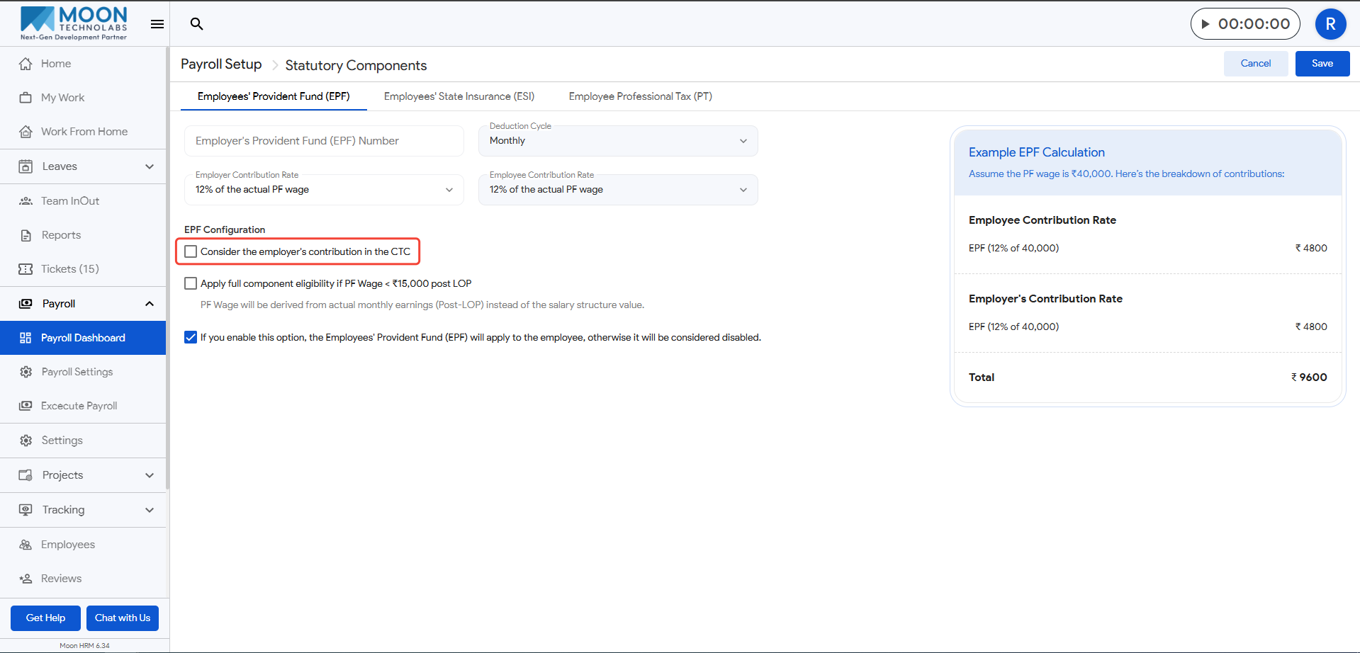 - Review the example EPF calculation preview on the right side and save the settings once everything looks correct.