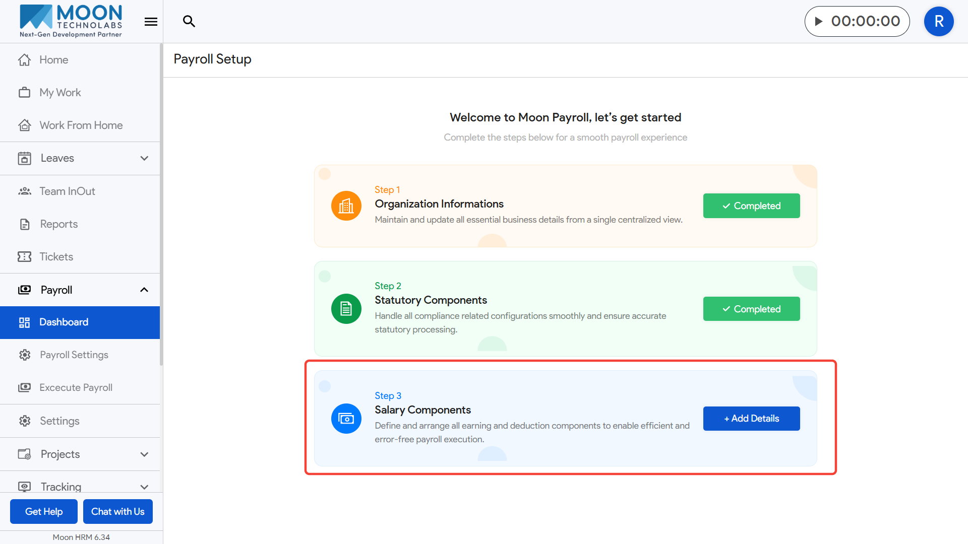To set up payroll, first click on the Payroll Dashboard from the left menu.