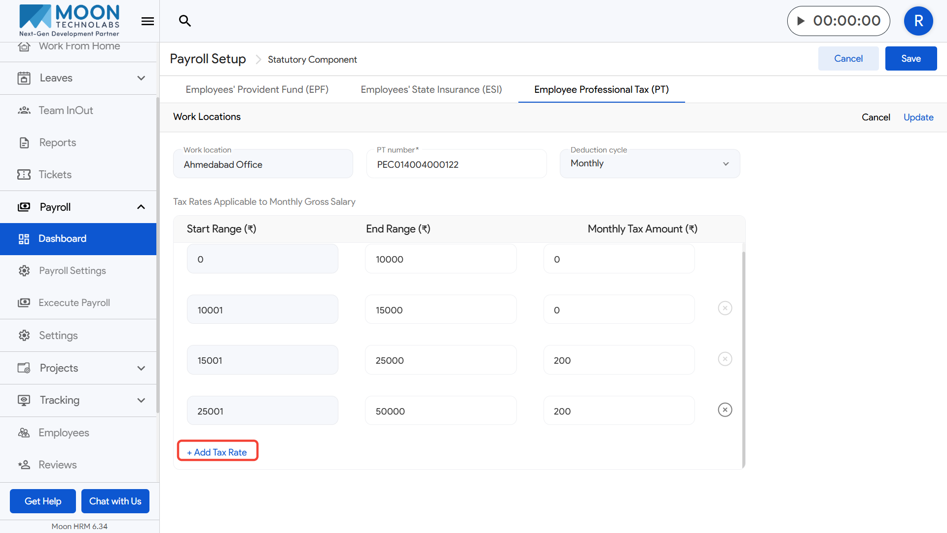 - Use the Add Tax Rate option to create additional slabs if required.