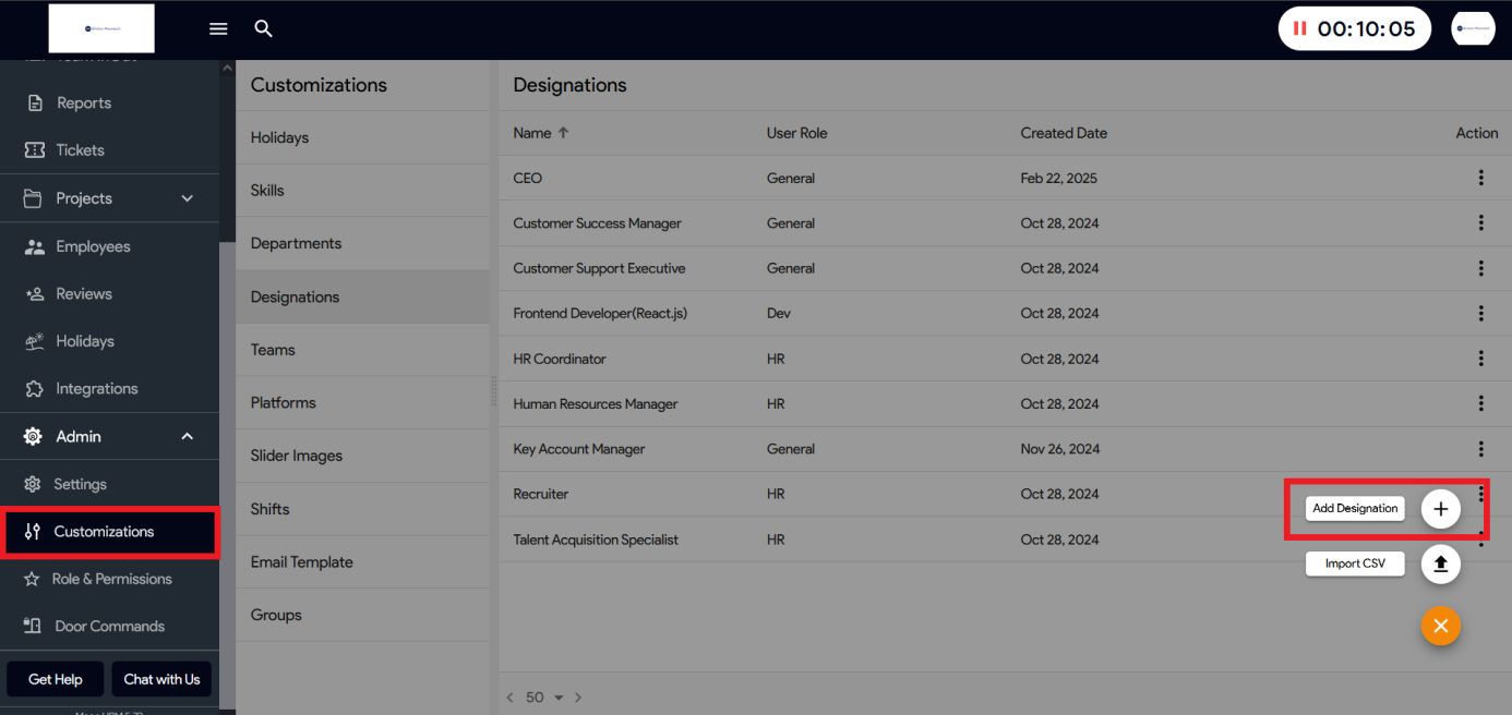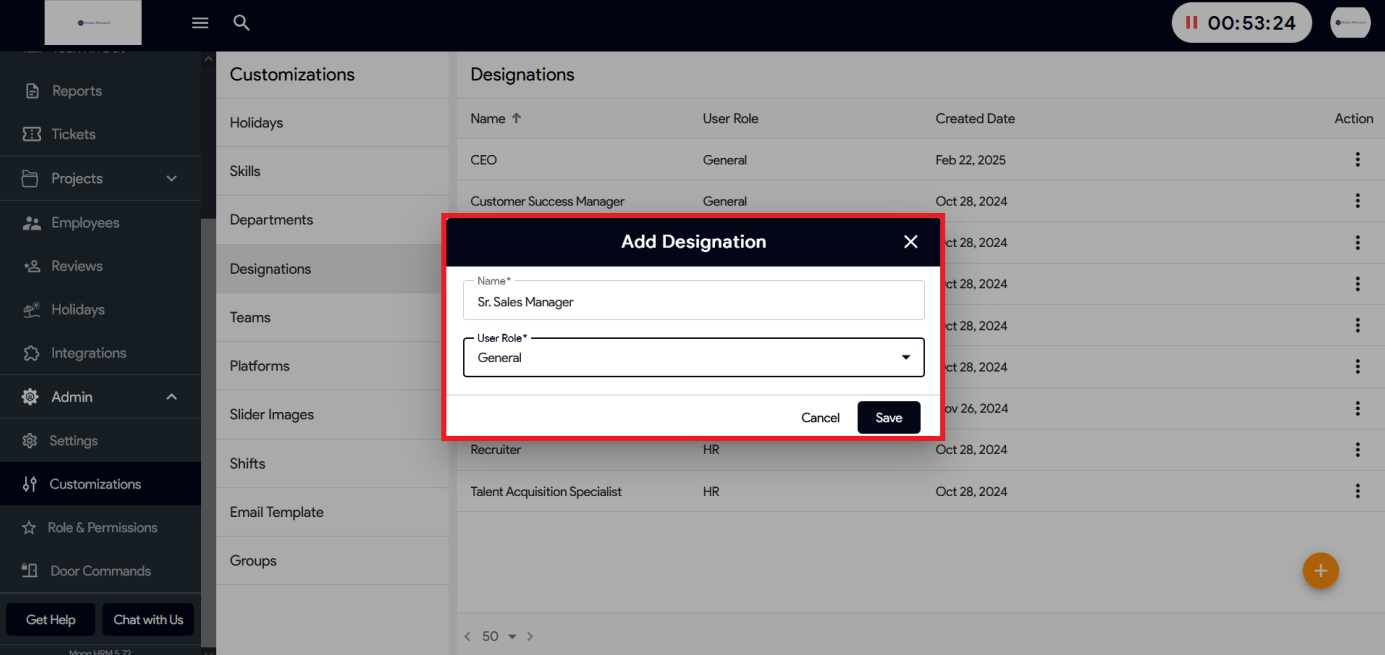 - Enter the designation name, select the user role, and tap the ‘Save’ button.