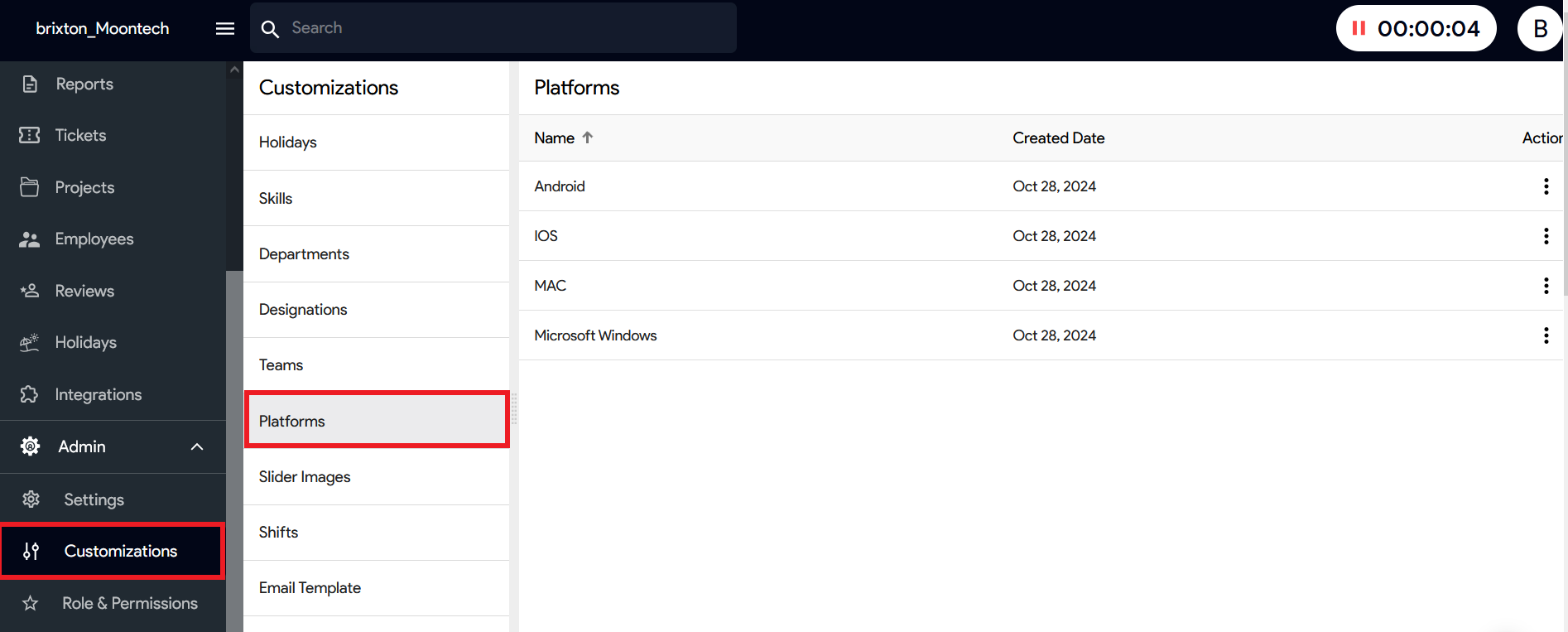 2. Navigate to the Admin > Customization > Select ‘Platform’ and add as many as you want.