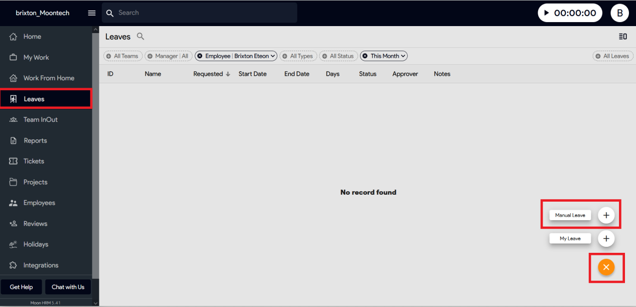 Moon HRM allows you to add employee leaves in just a few taps. Follow the below steps to add leaves manually in the Moon HRM.