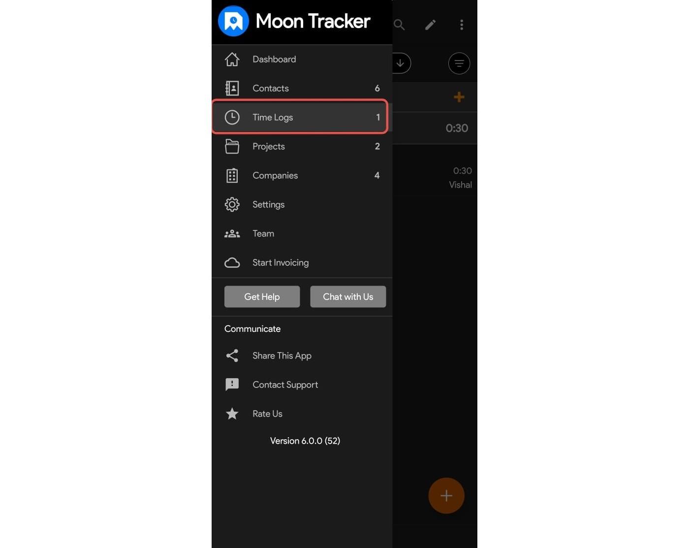 - Open the Moon Time Tracker on your Android device.