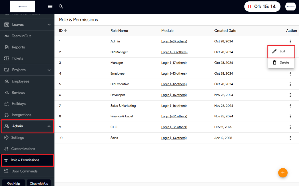 You can edit roles and permissions in Moon HRM easily by following the steps below.