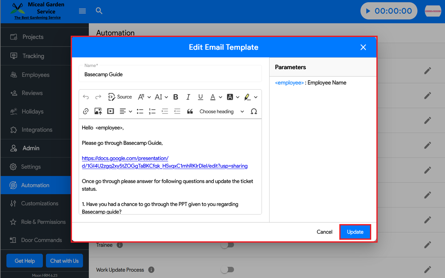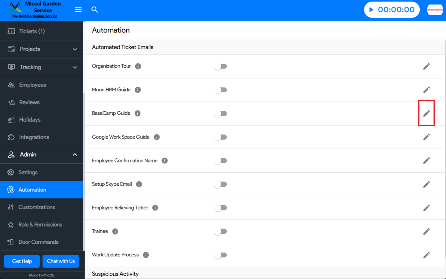 How to generate an automated BaseCamp Guide ticket in Moon HRM?