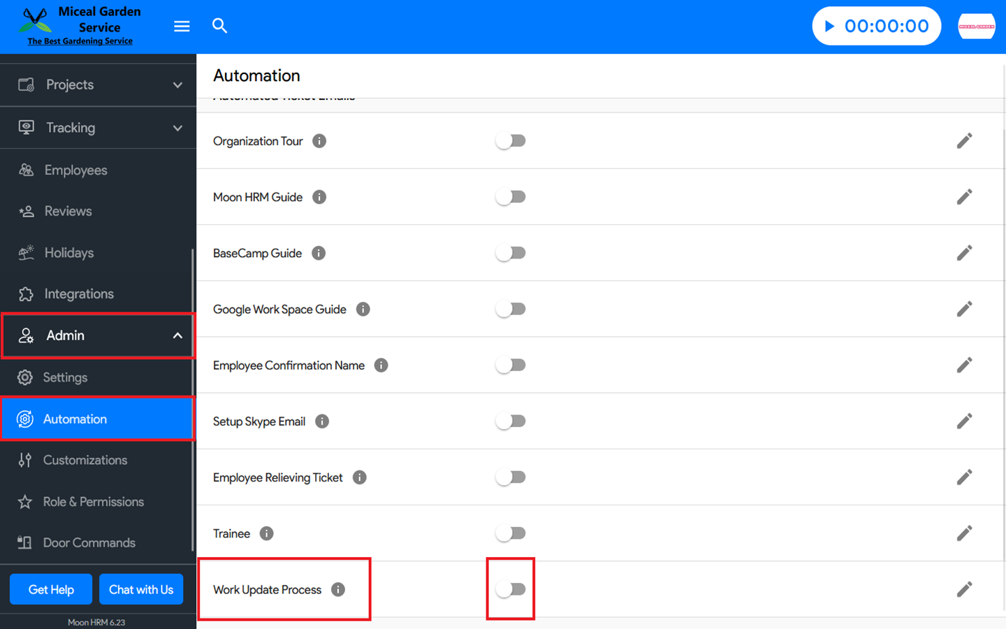 3. In the Work Update Process, you can enable the feature by turning on the toggle button or disable it by switching the same toggle off.