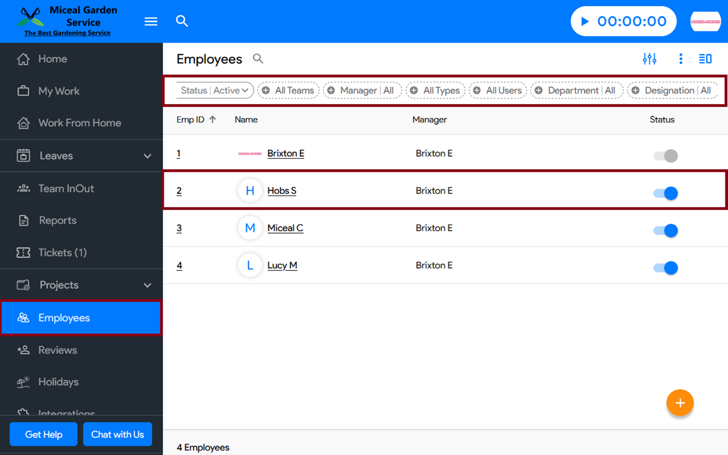 - By tapping on it, you can view the list of all teams and use various Filter Options to quickly find a specific team or employee based on your organization e.g. Status, All Team, Manager etc.
