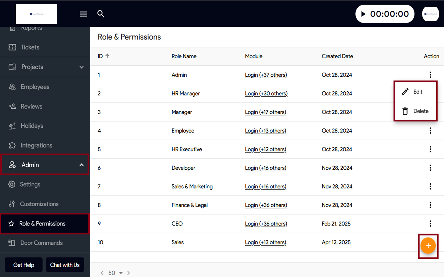 Here is where you can easily manage roles and permissions in Moon HRM.